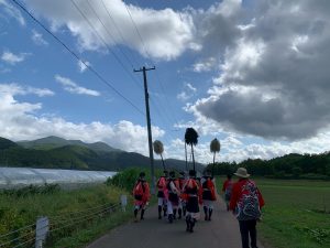 訪れる前は、正直場所もあやふやだった古平町。海と山に挟まれ、町のどこにいても自然を感じられる、のどかな場所でした。その一方で、お祭りの行列には活力あふれる海の男たち、元気にダンスを披露する子どもたち、あたたかく受け入れてくれる町のおじいちゃんおばあちゃんたち、住民の皆さんの力も強く感じられる町でした。どんな町なのかというのは、やはり実際に訪れて肌で感じてみて、初めて分かることが多いなと改めて実感しました。こうして行列の一員に加えていただいて丸一日、まちの皆さんと関わることができ、またこのように長く続く伝統的なお祭りに参加させていただき、とても記憶に残る経験となりました。また来年のお祭りや、そうでなくても観光や他の活動でぜひ古平町を再訪したいです!(カイ)