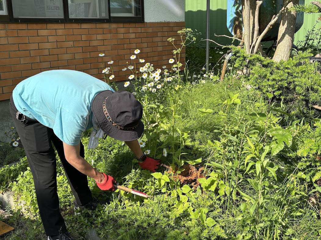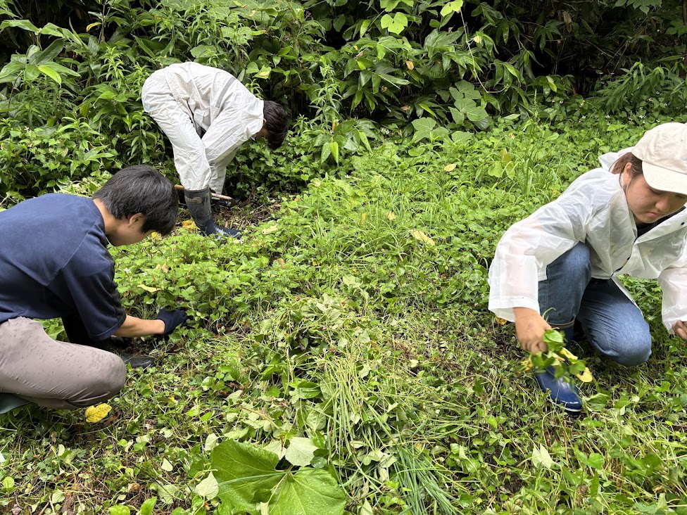 この日の午前中ははまますベースの周りの草刈りDAYです! 天気にも恵まれ作業しやすいかと思いきや気温がすごく高く、暑い。熱中症にならないように水分補給をしながら作業を進めていきました。