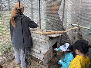 時間になると子どもたちが続々と到着!午前中はいつも通り、鶏を外に出して散歩させてあげたり、小屋のお掃除を行いました。少し前まで小さかったひよこたちも一回り二回り大きくなっていて、子どもたちも私たちもびっくり。大人の鶏よりは少し小さいひよこたちをたくさん抱っこをしてあげていました。また次に来た時にはもっと大きくなっているのかなぁ。成長が楽しみです。