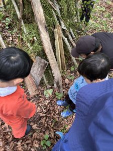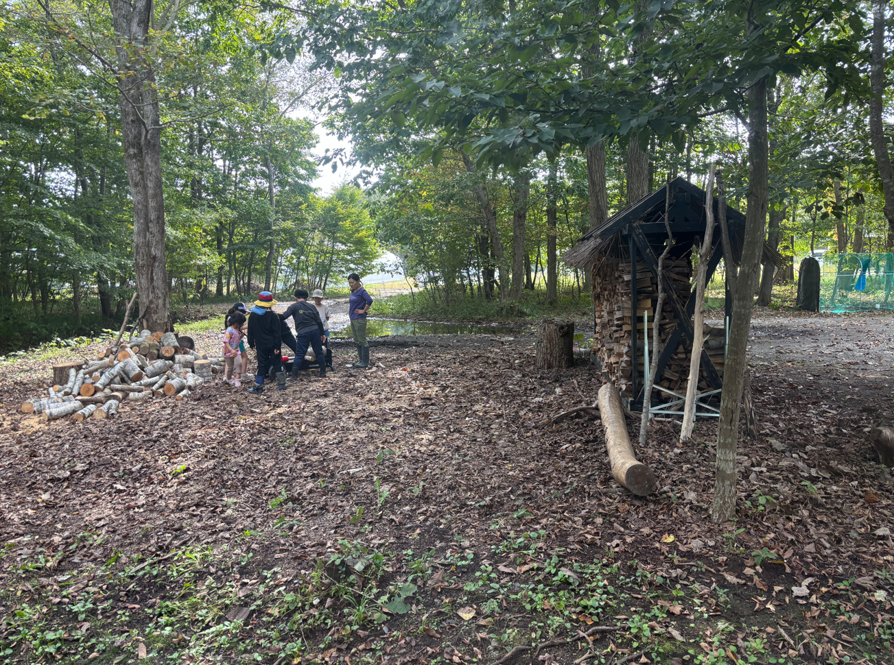 動物にエサをあげたり、そのために虫をたくさん捕まえたり、お昼ごはんを作るためにみんなで薪を割ったり、ツリーハウスを作ったり。さまざまな森の中での活動を通して、子どもたちがたくさん思考している姿を目の当たりにしました。なにをやっても良く、なにをやらなくても良く、自分がやりたいことを自分で選択して、やりたいだけできる。そんな特別な時間の中で、失敗や成功を繰り返しながら、私自身もどうやって子どもたちと接するといいかを学べたと思います。何もしない子に対して、「これをやってみたら?」ではなく、何をやりたいのかを一緒に考えて、やってみたことのがないことを一緒に探しててみたり、できた時には一緒に喜んで、できなかったら一緒に悩んで。そんな大切なことを子どもたちから学ばせてもらえた時間でした。動物や虫が当たり前にいる空間だからこそできる活動空間なのだと思えました。ありがとうございました!(えいみー)