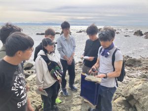 普段何気なく見ている地形でも、学芸員の方の説明を聞くことで、どういった特徴があるのかや、浜益の暮らしにどのような恩恵をもたらしているかを知ることができました。最後に、1日を振り返ってどうすれば浜益の歴史を人に伝えることができるのかを話し合いました。一通りの話し合いが終わった後は温泉へ行きました。その後、地域おこし協力隊の方と一緒に夜ご飯を食べ、翌日に備えて体を休めました。