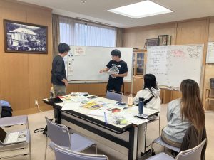 これまでの2日間の活動をもとに「浜益体感ツアー」のブラッシュアップを行いました。ニシン漁で栄えた明治・大正や国道開通までの「過去」、少子高齢化が進み浜益区内13地区の多くが限界集落となっている「現在」、きむら果樹園を起点とした関係人口増加や次世代が地元の産業を担っていく「未来」と、時系列に沿って浜益の歴史について紹介できるようにプログラム内容を見直した後、各行程での段取りについて参加者全員で意見を出し合いました。
