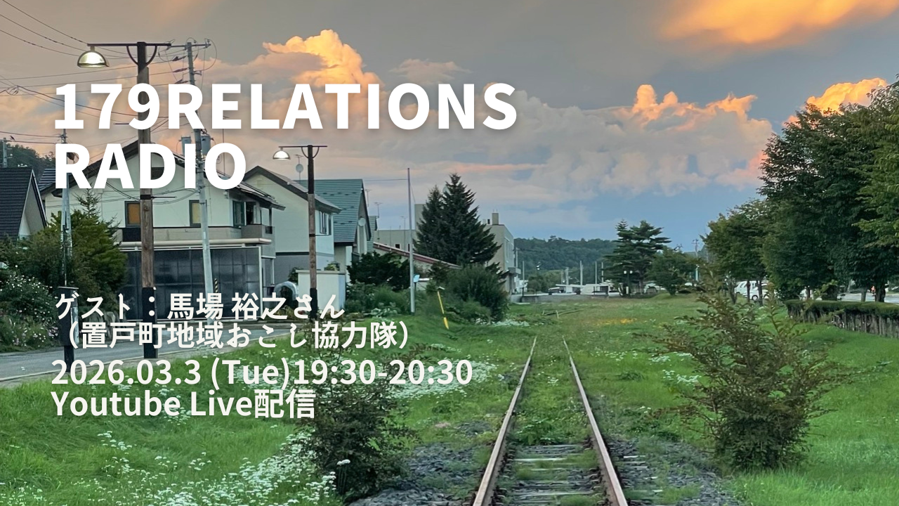 地域づくりに関わるゲストを招きお話を聞く『179RELATIONS RADIO』。ゲストが地域に関わるようになるまでのプロセスに目を向け、掘り下げていきます。第13回目となる今回のゲストは置戸町で活動する馬場裕之(ばば・ひろゆき)さんです!置戸町へ移住後、地域おこし協力隊として他の隊員のマネジメントなどを担当されてきました。現在は、置戸町の移住・定住促進に関わる活動を行うとともに、町の魅力を発信する取り組みとして、地方紙「置戸タイムス」の復活を目指し活動されています。そんな馬場さんのこれまでやこれからについてお聞きする『179RELATIONS RADIO #13』。ぜひお気軽にお申込みください!